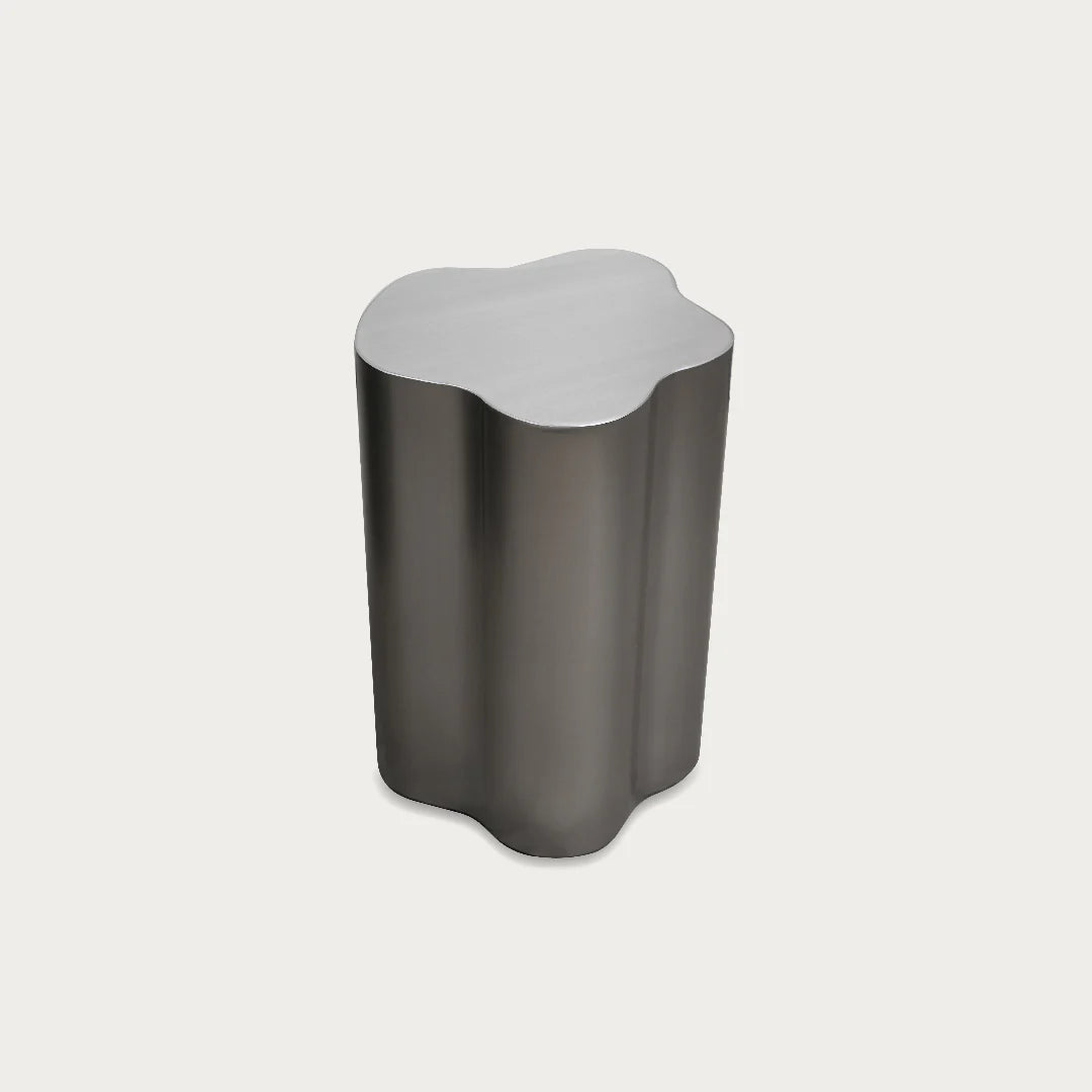 ptural refinement to the everyday. Crafted from brushed stainless steel, it is designed with clean lines and a compact form that makes it versatile for placement beside a sofa, armchair, or bed.