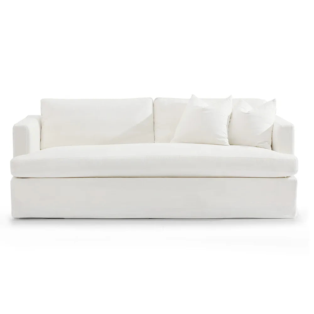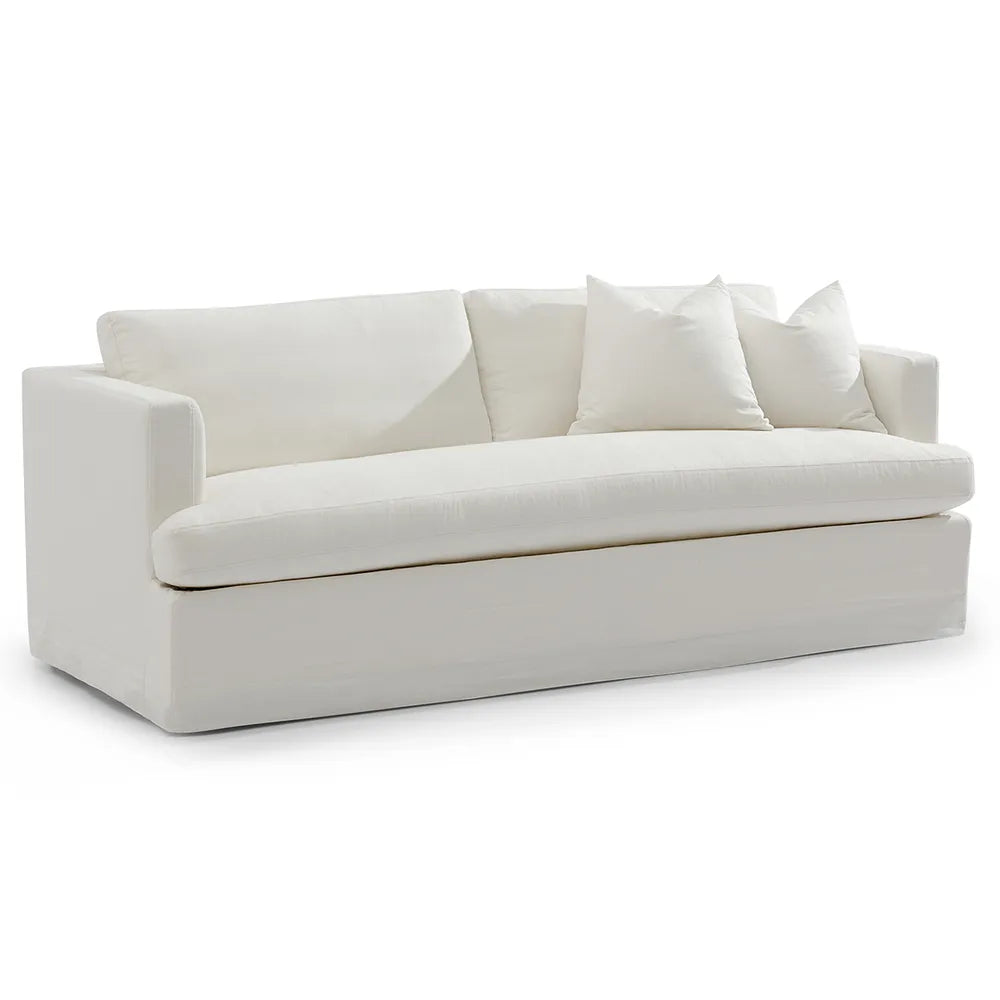 The Birkshire range is pure comfort with soft feather and foam fill seating and back cushions on a quality hardwood frame with inner spring suspension. Featuring a visually streamlined profile with single seat cushion and tailored slip covers, the Birkshire 3 seater sofa, upholstered in a fresh white linen blend fabric, injects effortless style and sophistication into any interior. Made for modern living, fully removable covers allow for easy cleaning, making this sofa as practical as it is beautiful. Available in a range of colours. Professional dry cleaning services only.