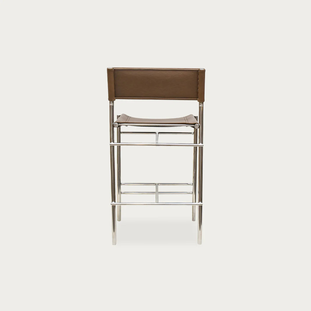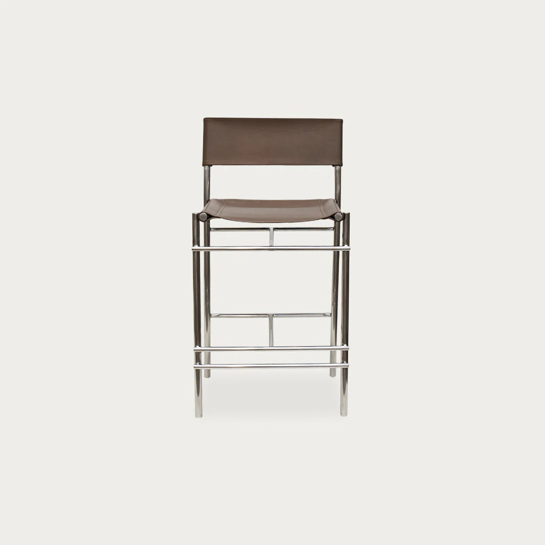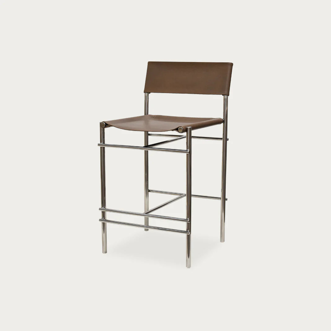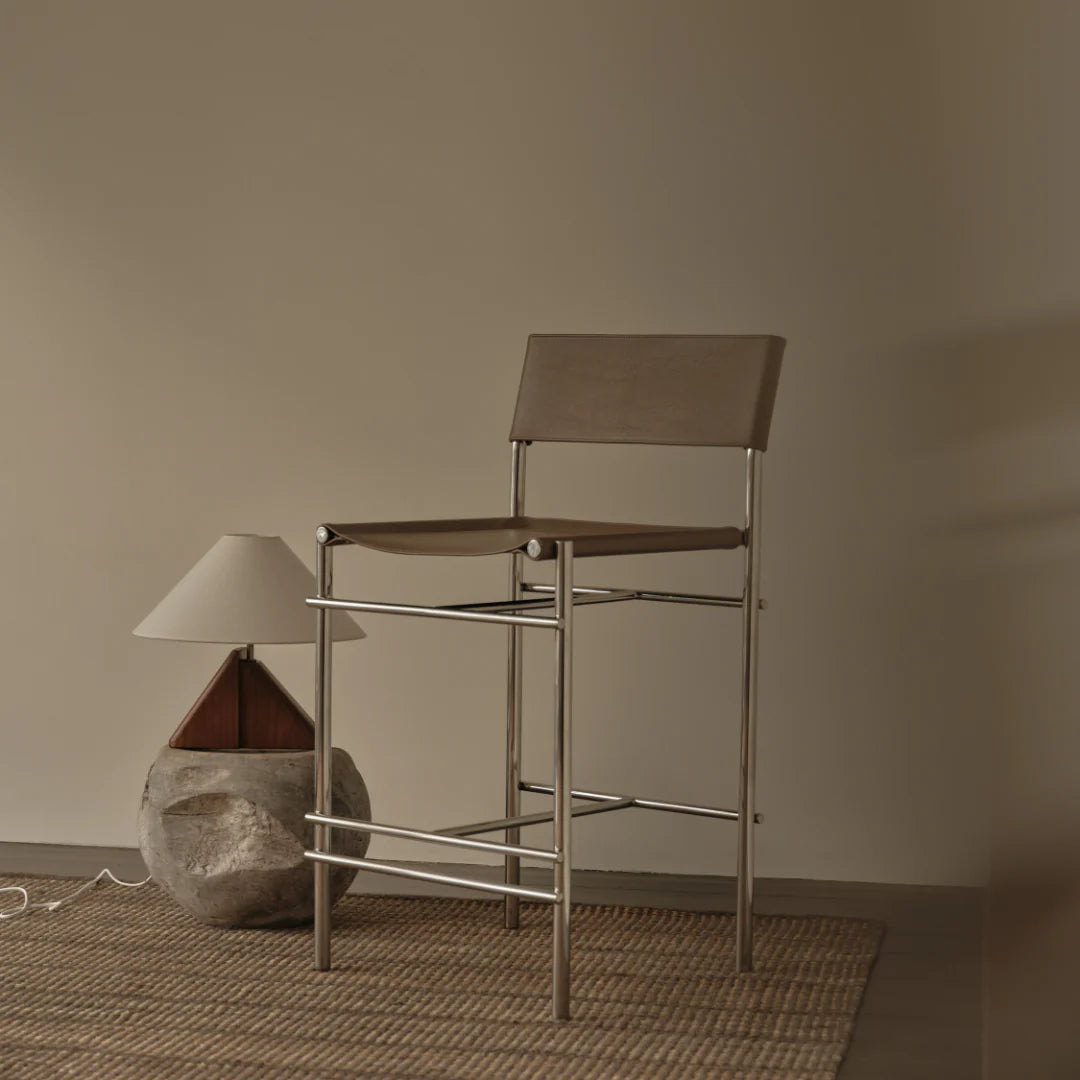 Defined by clean lines and a bold cantilever silhouette, the Chester Bar Stool features a tubular stainless steel frame paired with a black taupe leather seat and backrest. A perfect fusion of form and function, it brings a refined modernity to any space