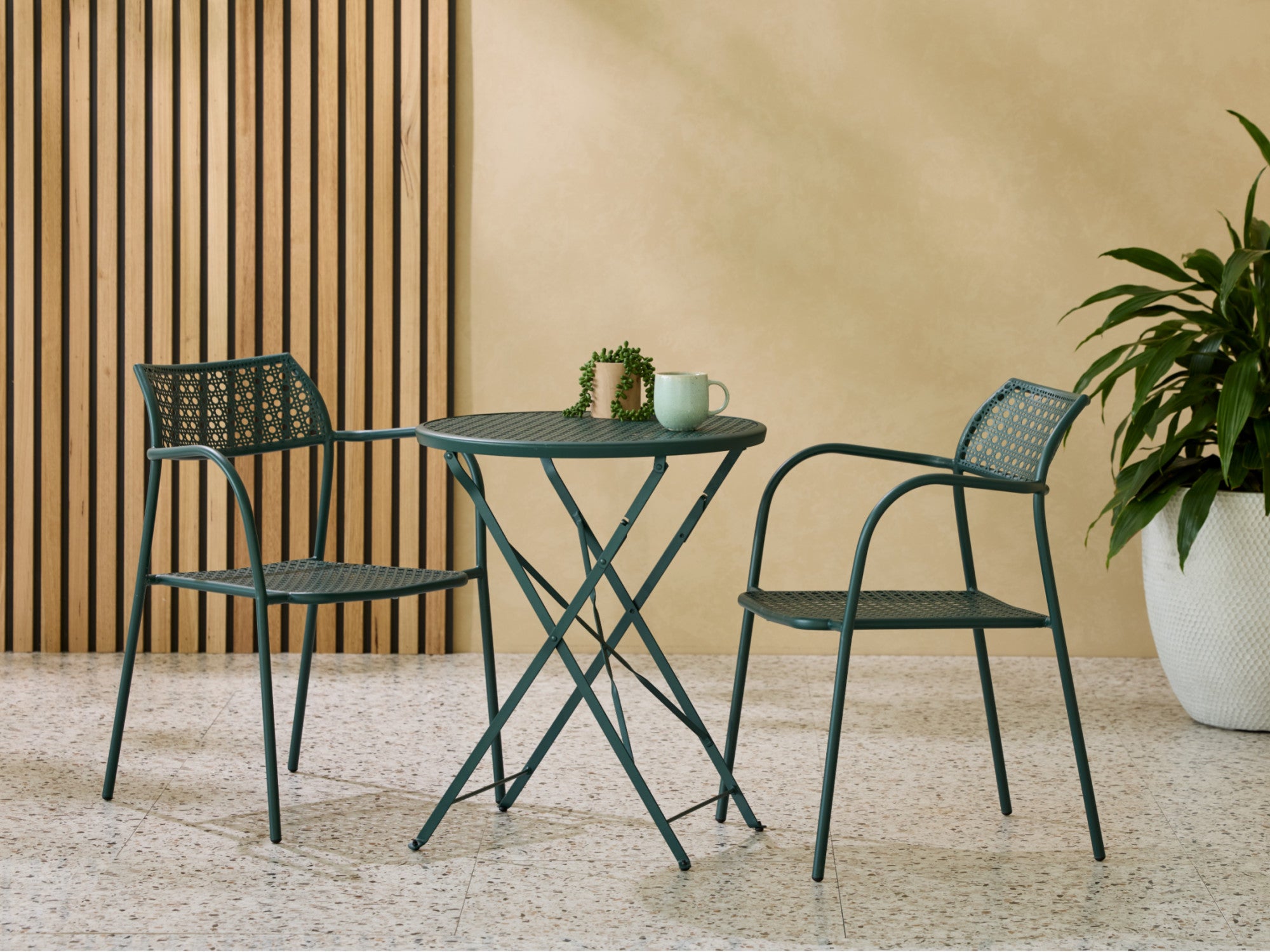 Enjoy al fresco dining without sacrificing style with our 3 piece outdoor set. Made for small spaces, this set is perfect for intimate dinners or casual gatherings. Its timeless design will elMontaguete any outdoor setting.