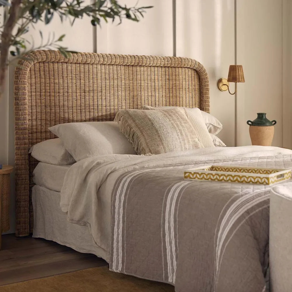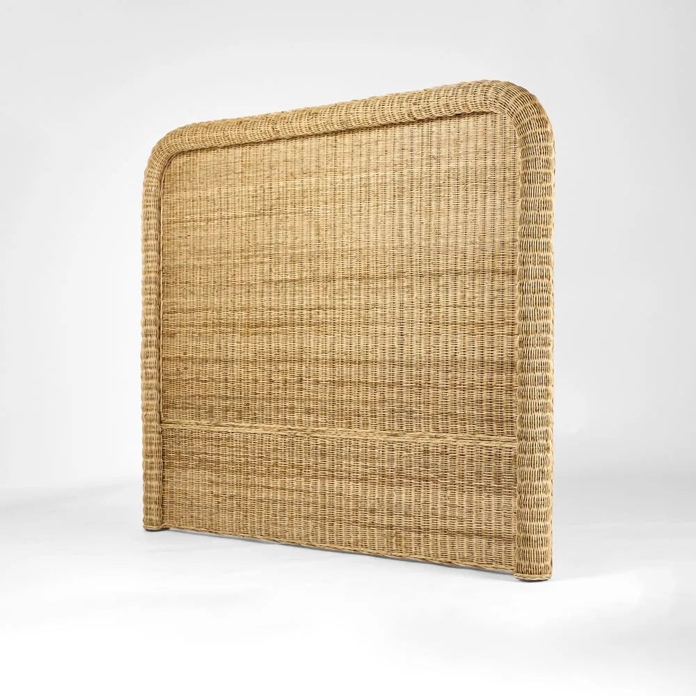 The  Long Island Rattan Bedhead is hand crafted using a combination of materials mango wood, rattan, slimit weave, an unprocessed rattan species with hard outer skin 3-4mm in diameter with the colour naturally varying from pale oak to tan. With an outer protective skin this species is one of the most resilient weaving materials available. This stunning bedhead provides a natural aesthetic and texture to your bedroom. The round curved frame softens the appearance providing the perfect backdrop.