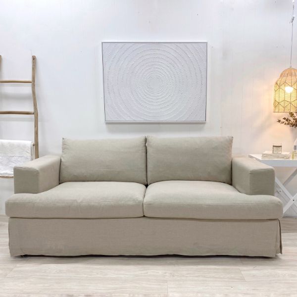 Newport Linen Pull-out Slipcover Sofa Bed, 2 Seater, Beige